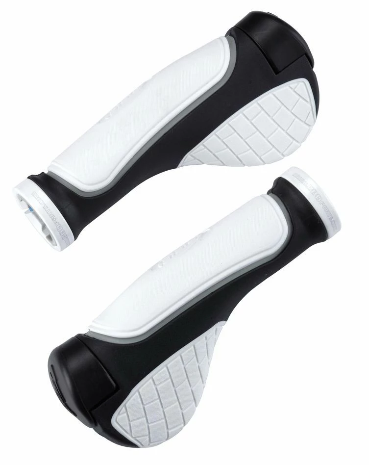 Paire de poignées BBB ergonomiques en Kraton blanc et de 132 mm de long, avec inserts plus souples et support en gel pour les paumes.